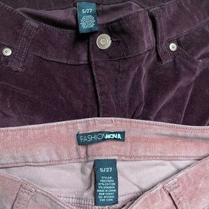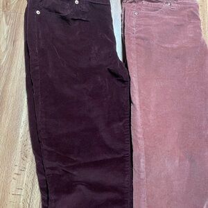 Dark purple/ plum & blush pink corduroy pants. Pants are skinny fit and medium rise. Very stretchy. Real front & back pockets. New/ unused without tags. Selling for a friend. Size says 5/27. Please allow for color variations since it is hard to capture exact color in the photos. I’m selling both pants in this listing.