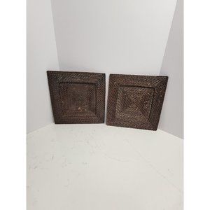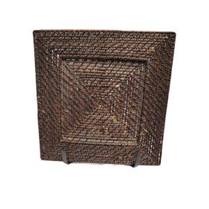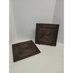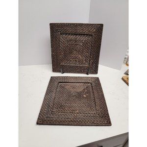 2 Woven Wicker Rattan 13" Square Charger Plates Boho Bohemian