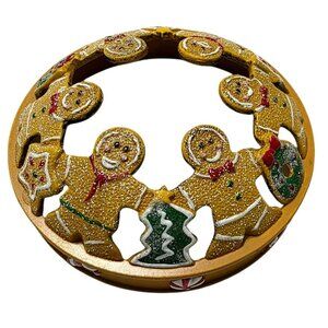 A set of 2 festive and durable Illuma lid candle topper designed to elevate the holiday ambiance. 2007 Retired pattern. Sugar frosted gingerbread men with wreath, tree, stars and peppermint candy canes. Candle NOT included