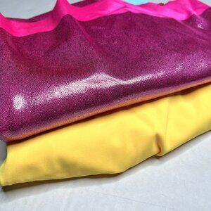 2 Yards Cosplay Fabric Pink Holographic Knit Yellow Spandex Costume Stretch NEW