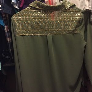 first one- black w/ gold sequins. second one- army green w/ gold sequins.