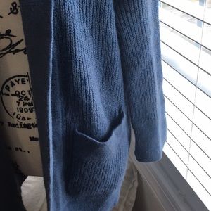 J Crew blue open front with pockets cardigan super soft feels like cashmere size S fits M. Amber drape front cardigan love the side slits and fringe. Size M. Closet clean out.