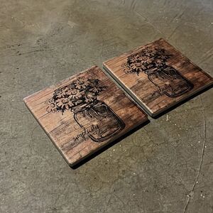 2 ceramic coasters - flowers in mason jar “simplicity”