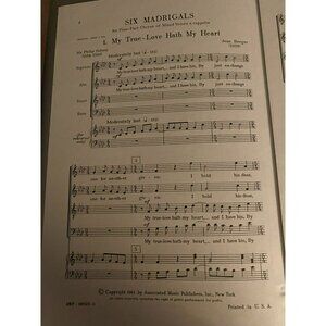 2 copies of Jean Berger "Six Madrigals 1. My True-Love Hath My Heart" SATB A Cap