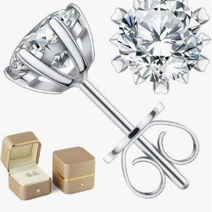 STUNNING DIAMOND STUD EARRINGS: These beautiful diamond earrings are placed in a 6- Hearts prong setting for a sturdy and balanced look. A moissanite diamond never loses its brilliance and fire. moissanite diamond is almost indistinguishable from a natural diamond, except of course the price! which is an eternal jewel at an affordable price. THE BEAUTIFUL MYSTERY OF THE DIAMOND: The design is inspired by the gorgeous rose window of Notre Dame de Paris, the extreme cut creates a perfect symmetrical facet, creating an unprecedented extreme sparkle with the strict cutting requirements, and the fire reaches the highest grade-EX, which can be seen from any angle of brilliance. The sparkle is the highest grade of fire (EX) and can be seen from any angle. CERTIFICATE OF AUTHENTICITY: The certificate of quality, issued by the GRA, an authoritative appraisal agency, truly determines the diamond's grading standards. Each diamond has an exclusive ONLYLIKE coding, visible with a jewelry loupe magnification of 10 times, proving the authenticity of the diamond and your ownership of the diamond. INNOVATIVE TECHNOLOGY: Each diamond is cut using exceptional cutting techniques, and only a perfectly mathematically proportioned cut can reflect extremely bright light. Sterling silver well-m mountings with secure backs, shiny and hypoallergenic. Comes with GRA certificates & GRA Warranty card.