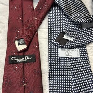 Set of 2 designer ties Christian Dior and Valentino. Both of these are preloved. I believe the Dior one is vintage and the Valentino one is modern.