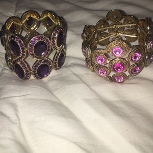 One purple and gold bracelet, great for prom. One pink and gold bracelet, also great for a prom or outing where you want to dress up! Both worn once.