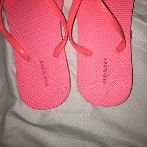 These hot pink and bronze flip flops are a perfect addition to your summer wardrobe! Bronze worn once, pink never worn. Sold together, two pairs for the price of one