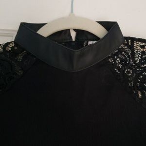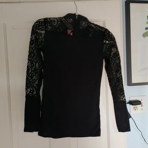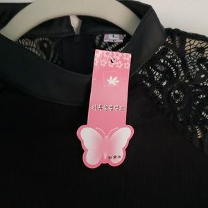 Purchased from Sammydress, an overseas discount company online. New w tags and never worn because it's listed as L but definitely fits like a XS / S. Body is ribbed sweater material, lace sleeves, and faux leather around the neck. Button to close popped off but will include with shipment. Cute sweater for right size person! Good price - Bundle and Save!