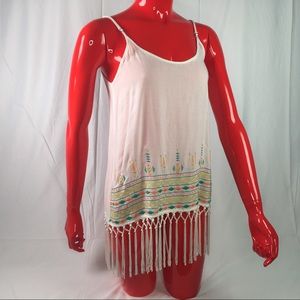 This Entro embroidered tassel tank in cream is a great match for just about any BOHO bottom or skinny jean.