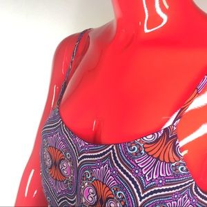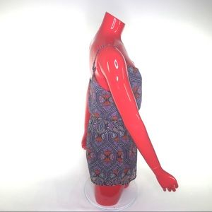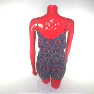 This Poetry Tapestry Inspired Multicolor Blue Orange Pink Romper is light and fully lined. It can be dressed up or down and is a great statement piece.