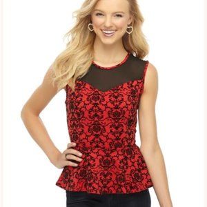 ❤️2 for 12❤️ Bongo Red Velvet Damask Peplum Top