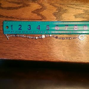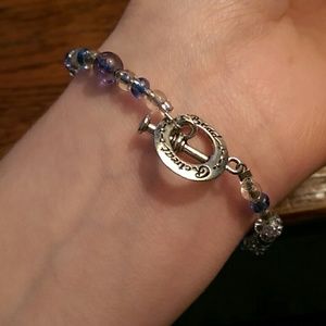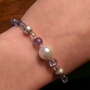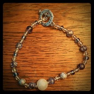 Light blue, frosted silver, and clear beads give this bracelet a wintery wonderland feel. Faux pearl center bead and a silver clasp. Just shy of 9 inches in length. Buy 1 for $8 or 2 for $14, just let me know so I can make you a separate listing!