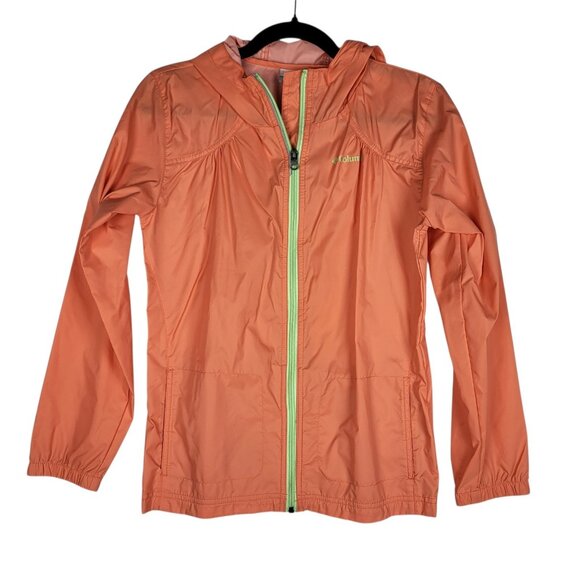 Columbia Wind Breaker Jacket Kids Girl Peach 14/16 Full Zip Hooded Lightweight