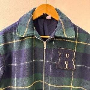 Trendy Divided by H&M Plaid Jacket featuring a fuzzy "R" patch for a cool varsity-inspired look! ๐๐ This full-zip, collared jacket is cute, comfy, and perfect for layering at the next game or casual outing.