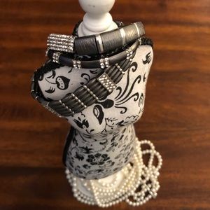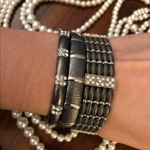 These three beautiful Swarovski crystal bracelets are perfect to pair with an elegant outfit. Gray beads with crystals are quite the statement. Very light. Stretchy, elastic type. 3 in 1!