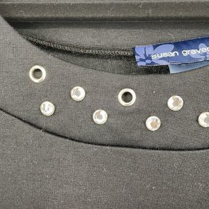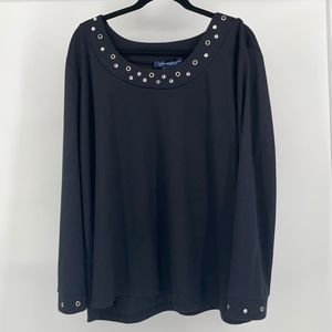 2 for $15 Susan Graver Black Long-Sleeve Rhinestone Detail Pullover O-007