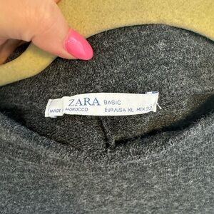 Super cute balloon sleeve mock neck sweater dress from Zara in a cozy dark gray