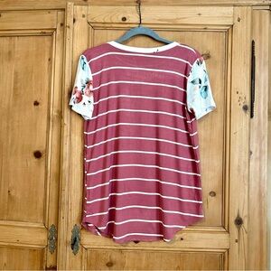 2 for $20 7th Ray Mauve and White Striped Tee with Floral Accents. L