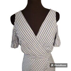 2 for $20 BB Dakota Dress Nautical Beachy Striped Cold Shoulder Ruffle Size 8