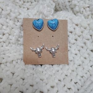 2 for $20! Blue Heart and Silver Bull womens Earrings