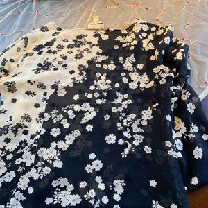 Black and white floral blouse - 100% silk size 10. Small pull in one arm. See pic, not noticeable when wearing