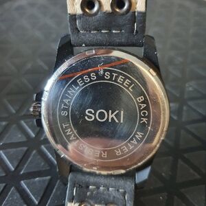 2 for $20😃Soki Black/White Leather Men's Field Watch w/Date