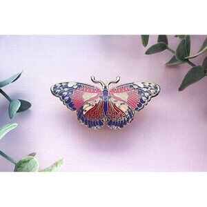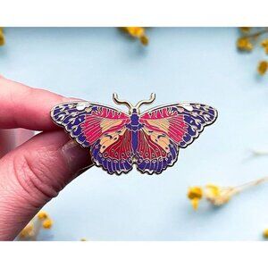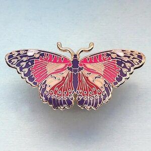 This beautiful Red Lacewing Butterfly enamel pin depicts the stunning insect with its full array of colors used to warn off predators. Red Lacewings (Cethosia biblis) are found in the Indian subcontinent, South-East Asia, and East Asia. This hard enamel pin is 1.5" from tip-to-top and is set on a highly polished gold-plated metal. This is a Grade A Pin, the highest grade awarded to pins, meaning that it doesn't have any noticeable flaws.