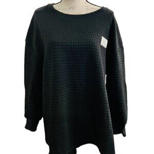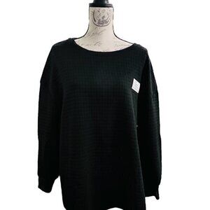 🛍️2 for $25 Sale🛍️ Black Waffle Square Crew Neck Sweatshirt 1X Cozy