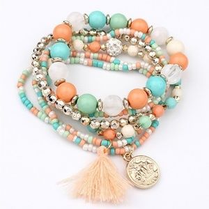 2 for $30 Boho Coin and Beaded Stretch Bracelet