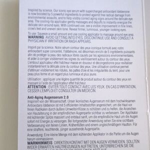 This powerful serum with advanced Idebenone technology and a complex of restorative ingredients transforms the look of the delicate skin around the eyes, with intense environmental protection and visible correction to skin's appearance. Targets even severe dark circles and minimizes the appearance of fine lines, crow's feet and uneven skin tone. instantly de-puffs and energizes the eye area. Eyes appear brighter, more toned and radiant. Ophthalmologist tested.