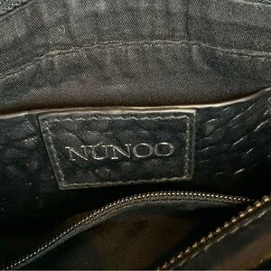 Stylish black textured small crossbody bag by Nunoo New Zealand Moon Chiara Features a sleek design with handles or the attached cross body strap. Excellent pre owned condition with no flaws