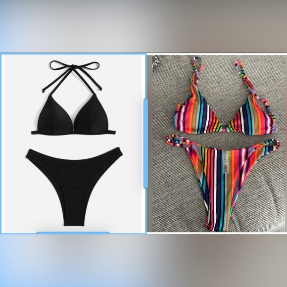 2 for $5 - SHEIN Colorful Striped Bikini Set size S + black bikini set size M