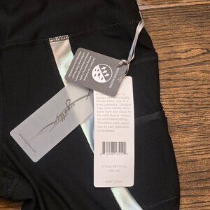 🏷️NWT black and metallic silver Gottex leggings size small. One small zippered pocket and one larger (phone) pocket on left side. Mesh inset on each side from mid thigh down as seen in last photo. These leggings are made with soft fabric for a fit and feel that effortlessly moves with you. Moisture-wicking and quick-dry properties help you stay fresh with strategic lining to flatter curves and elongate legs. High-waisted. Full Length. Interlock to Insure Smooth and Opaque Finish. Size small.