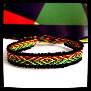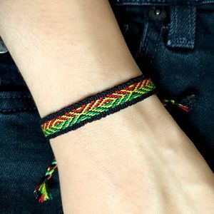 •Cool rasta pattern, handwoven with black, green, yellow & red wool thread. (Very soft & light weight feel on wrist)