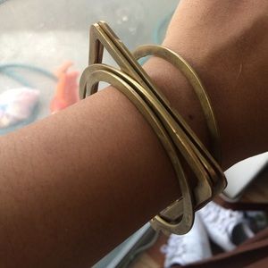 Two wonderful bracelets. First bracelet is a orange beaded bracelet, great for those summer dresses. The second bracelet is a five piece different shape metal type arm candy.