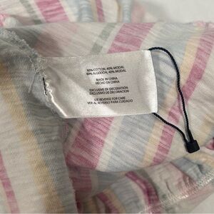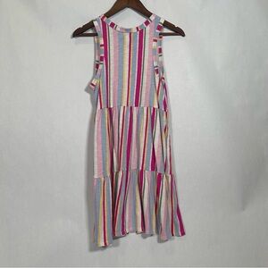This sleeveless sundress from GAP features a charming tiered and ruffled design in delightful shades of pink and purple. With a crew neck and a flowy silhouette, it's perfect for casual outings or resort wear, offering both comfort and style.