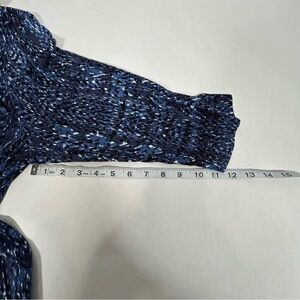 Elegant blouse with a blue and gray pattern. Features a stylish design. Ideal for versatile wear.