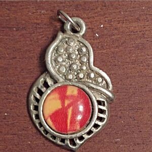 2 for $20 VTG Boho Red Yellow Silver Pendant