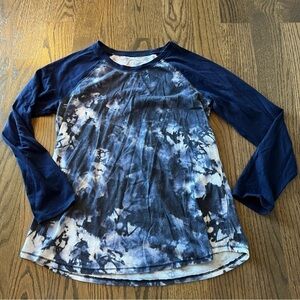 2 girls Justice long sleeve tops size 18/20 one black one navy tie dye and solid