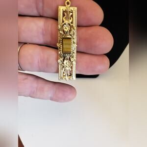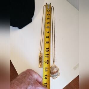 2 gold tone pendant necklaces with chains and claw closures bundle # 2