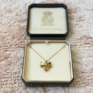 Juicy Couture Necklace Long/Gold Heart Banner.Worn a few times. box included (box condition is fair). necklace has a long chain. a few scuffs on the closure and charm, but overall condition is fair-good.