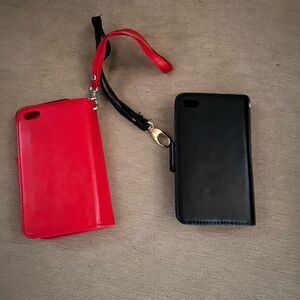 2 iPhone 5 cases wallets with detachable plastic case (red and black )