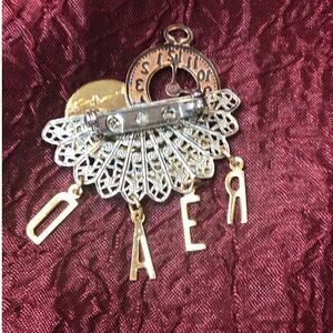 2 in 1 Pin/Pendant Teacher Writer Book/clocks hanging Read word . Beautiful multi use pin/pendant. Can be put on a chain or worn as a pin. Wonderful teacher gift. Has silver/gold/cooper tones. Filagree background. Crystal on clocks. Preowned very good condition 2x1.5