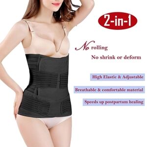 2 in 1 Postpartum Support Recovery Belly Wrap Waist/Pelvis Belt Plus Size NEW