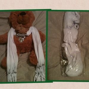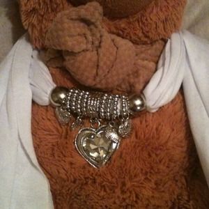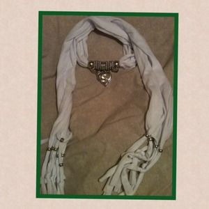 This is a very very cute scarf that doubles as a necklace. It is very unique. It is new & never worn. I opened it to show how this scarf works😊