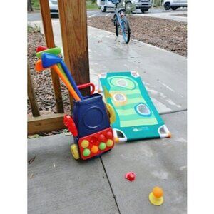 [NEW DESGIN ROLLING CART]- In classic blue and red body, this kids golf set comes with its own all-surface "hole," support to hold 8 golf balls, all parts can be stored on the cart, allowing for easy play anywhere.