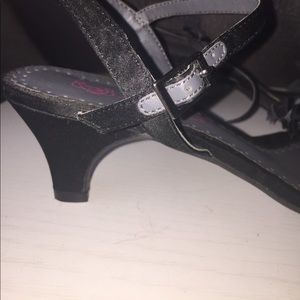 These 2 inch heels are black and navy blue. They are mostly black. These shoes are easy to walk in and have only been worn twice.