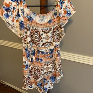 Ladies fiesta color size small shorts romper. Ladies blue/gold color size small shorts romper.