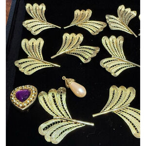 * Colors: Primarily gold tone with accents of red, purple, black, and enamel